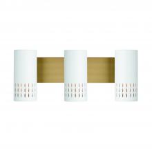 24"W x 9.5"H 3-Light Vanity in Aged Brass and White Metal Shade with Painted Aged Brass Interior