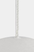 Entirely handcrafted from white coiled cotton cord, the Fishkill pendant is a pure expression of materiality. The small gaps between the coils allow light to escape, creating a warm, glowing effect that fills the entire shade. Available in two sizes, Ferndale lends a fresh, airy quality to contemporary spaces. Due to the one-of-a-kind nature of the medium, exact colors and patterns may vary slightly from the image shown.