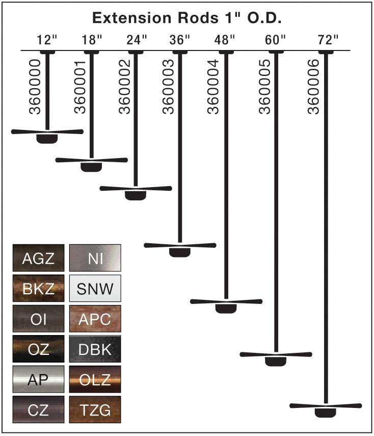 60 inch fan downrod (1 inch O.D.) suggested for 14 foot ceilings in Olde Bronze