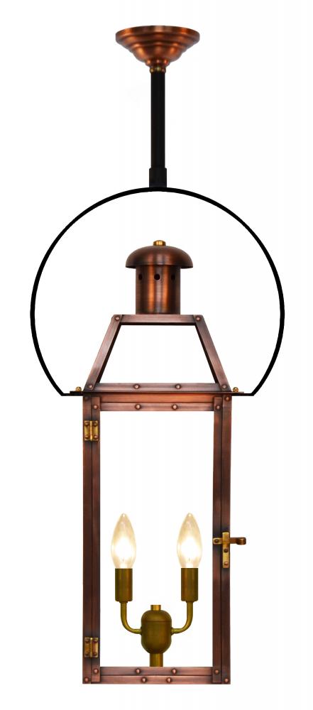 Size 25 Electric Copper Lantern, 2 candelabra base sockets, with Classic Yoke